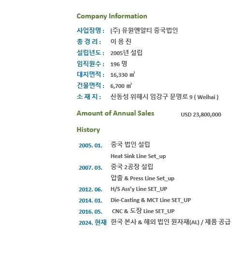 ■ 09.2015 YU WON NRT 베트남 법인 설립 [ 흥옌 ]